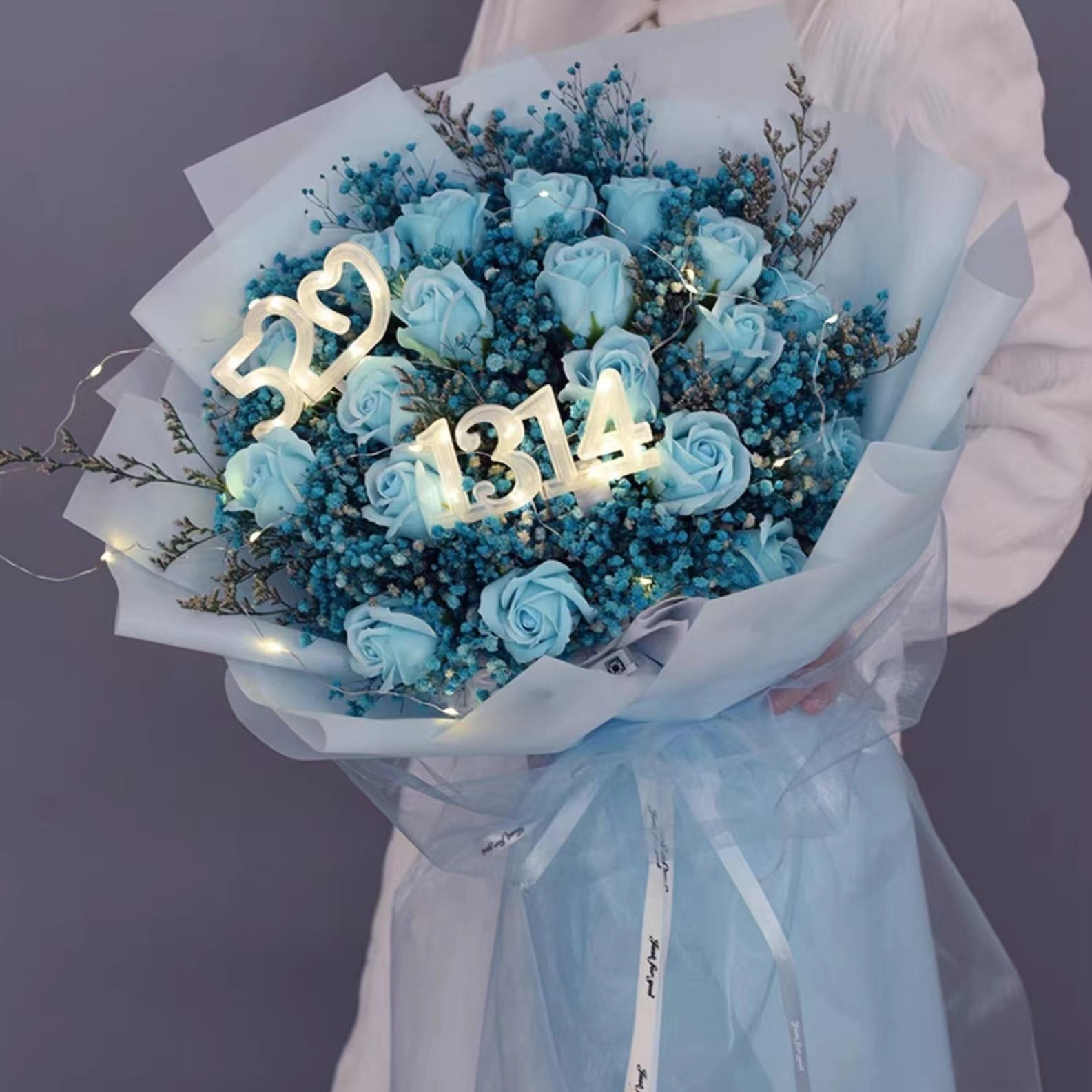 颜色4:满天星+19朵玫瑰(粉蓝色)